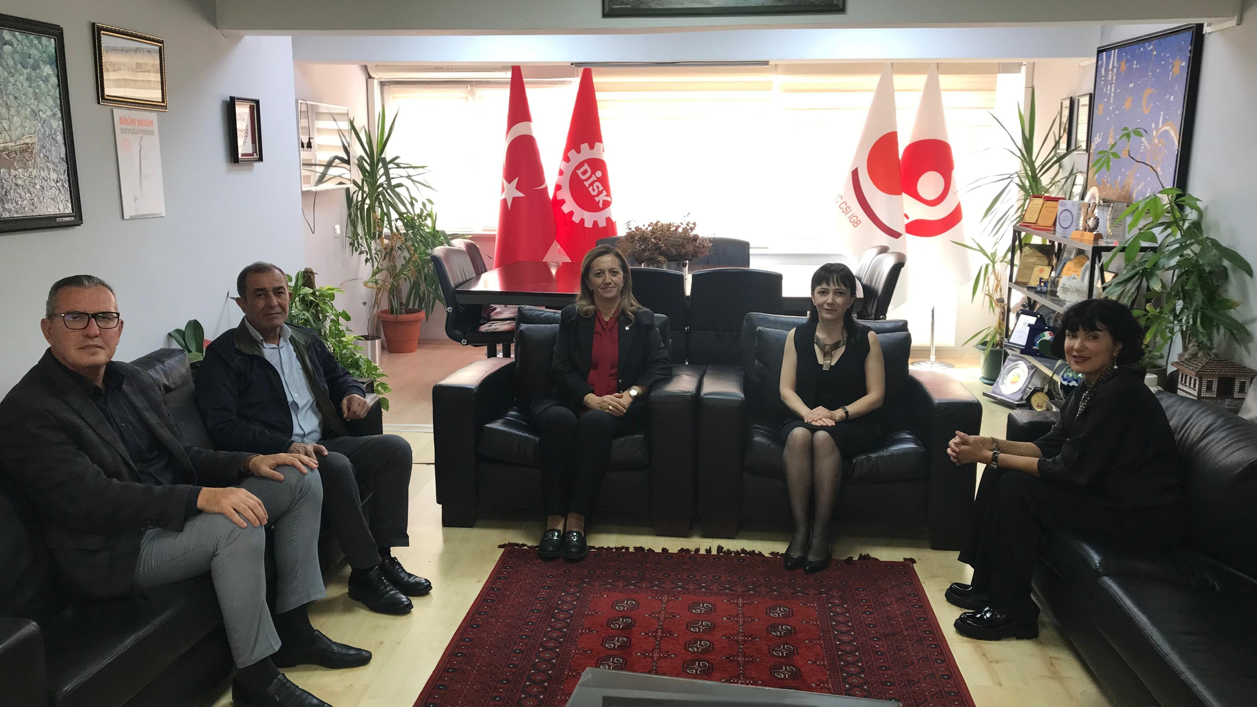 Sendikamızın Genel Başkanı Duygu ÇALIŞKAN NALINCIOĞLU, Genel Sekreterimiz Hülya ALP ve sendika uzmanımız Cihan SEZER, Bank-SEN adına DİSK'i ziyaret ederek, sendikanın ve işkolundaki emekçilerin güncel durumu, örgütlenme çalışmalarımız ile yaşanan sorunlar konusunda değerli bir fikir alışverişinde bulundu. 08.10.2025 tarihinde yapılan ziyarette sendika heyetimiziDİSKGenel Başkanı Arzu ÇERKEZOĞLU ile DİSK genel sekreteri Tayfun GÖRGÜN ve yönetim kurulu üyesi Şükret SEVGENER karşıladı.